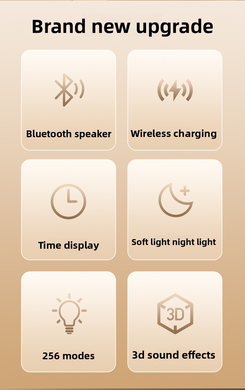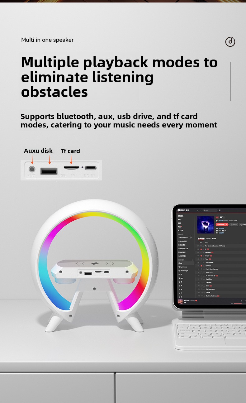 Functions: Wireless charging, night light, alarm clock, Bluetooth audio